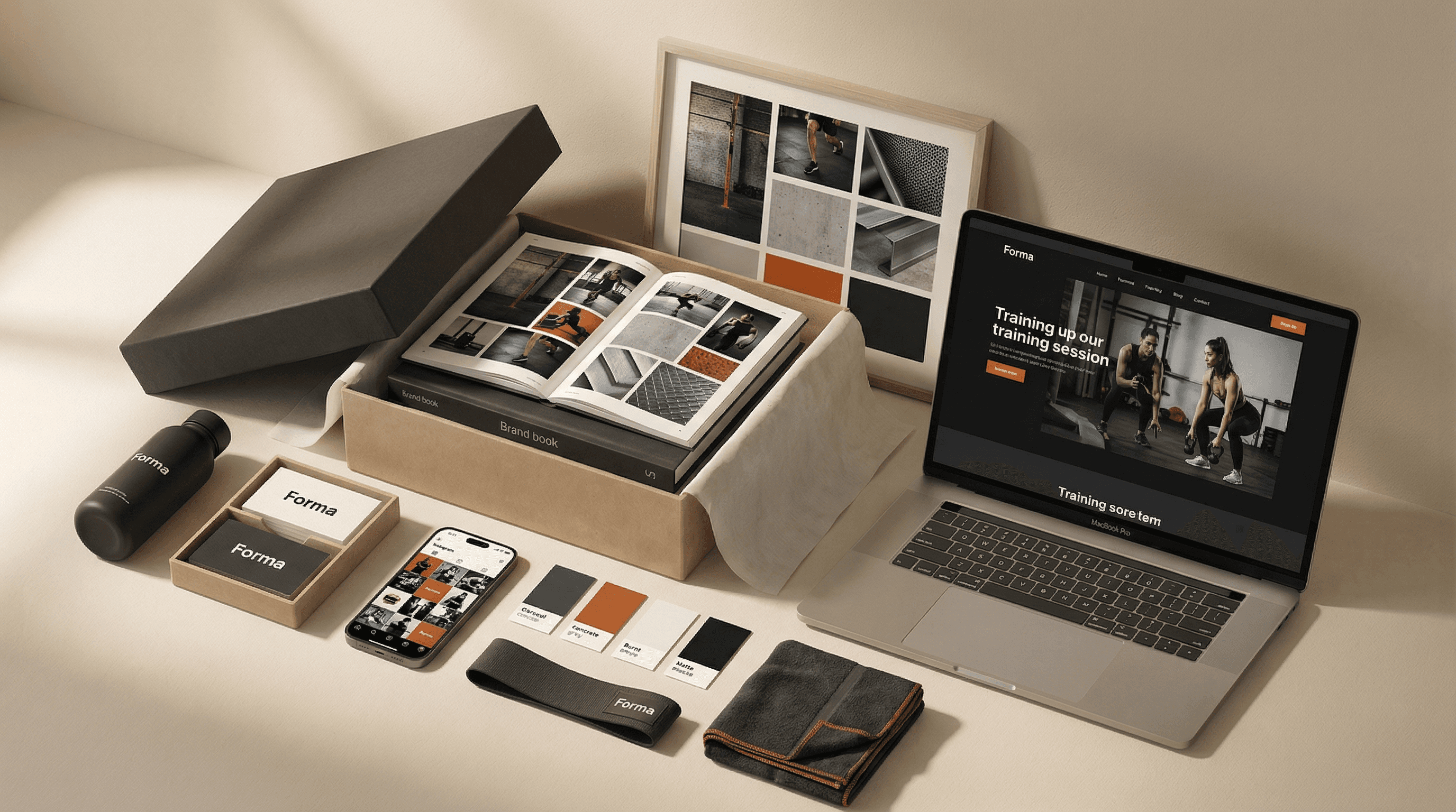 полный визуальный язык: цвета, типографика, лого, мудборд. дизайн-кит с шаблонами для соцсетей, презентаций, документов. каждый носитель визуально связан с остальными